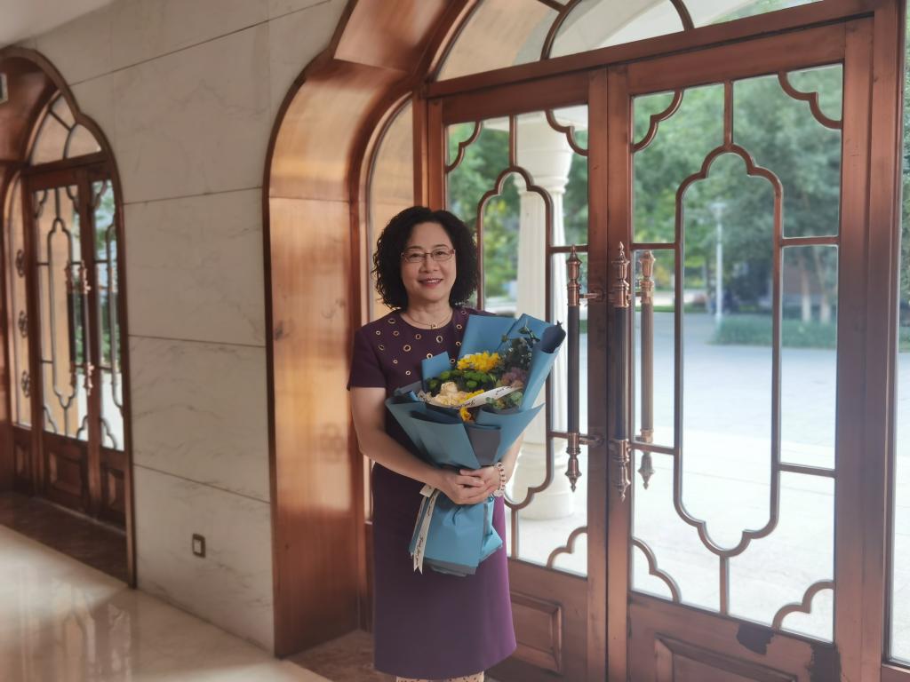 座谈结束后,大家合影留念,学生代表为程慧玲校友献花,常秀鹏书记代表开云kaiyun体育为校友赠送纪念品。