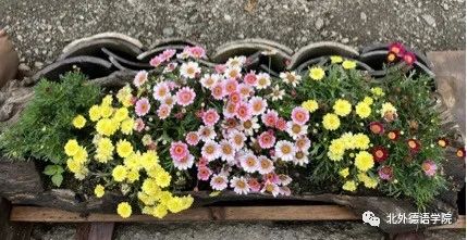 洛克故居门前用东巴文书写的对联“新年新月新气象 千花万花已出来(根据纳西族阿妈介绍音译)”让党员教师感受到了象形文字的魅力。