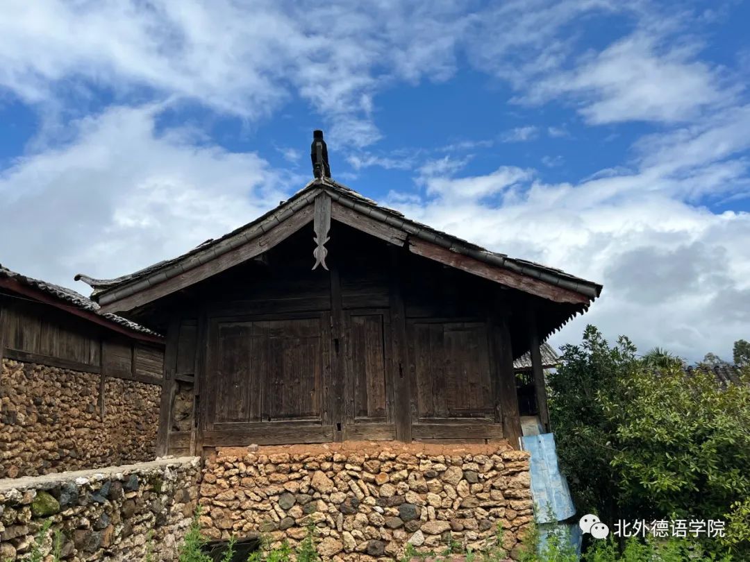 洛克故居位于玉龙雪山南麓的玉湖行政村雪嵩自然村,该村的纳西语为“巫鲁肯”,意为雪山脚下的村子。实践团来到雪嵩村时恰好雨过天晴,空气格外清新,沿途一砖一瓦皆历史,一草一木皆风景。