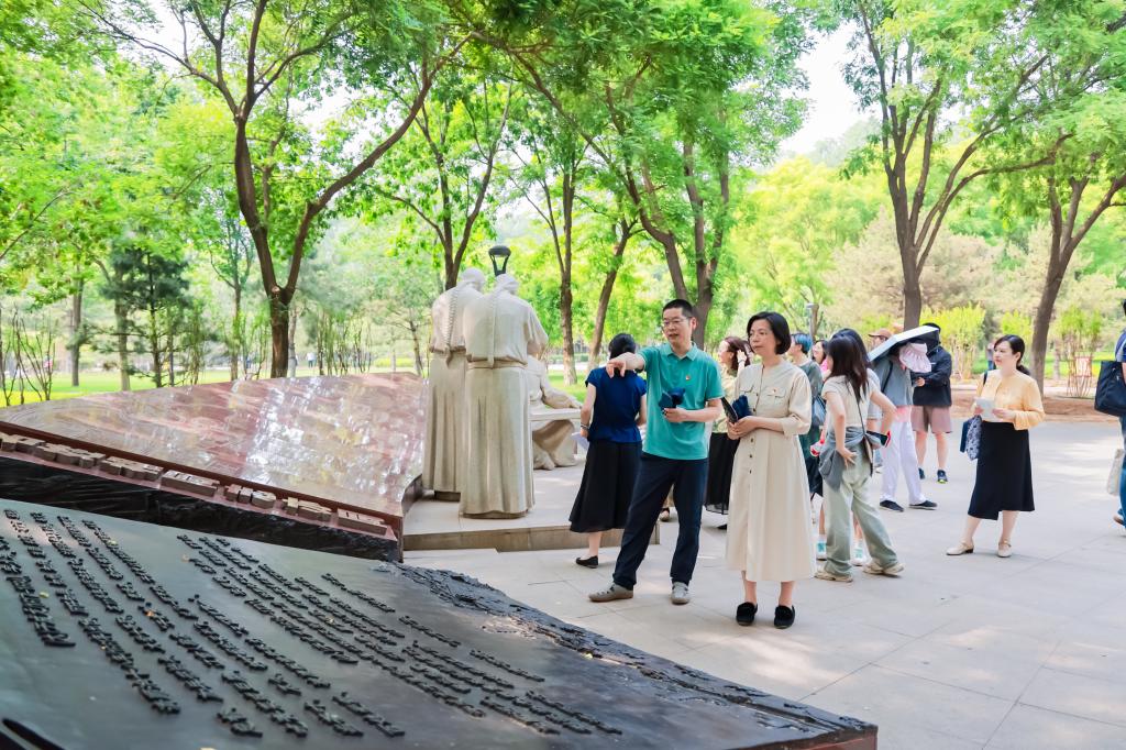 在运河森林公园矗立的通州第一个党支部纪念碑,展示了通州第一个党支部书记周文彬与其他党员的坚毅形象。在国民党的白色恐怖下,周文彬烈士排除万难,创建并成立了中共潞河中学党支部,这也是通州建立的第一个中国共产党党支部。通过老师的细致讲解,我们学习了革命先烈们的英雄事迹,深刻体会到革命事业之艰苦,和平安宁之难得,敬仰与缅怀之情油然而生;他们坚定信念、无私奉献的精神,也激励着我们在未来的学习生活中不断前行。