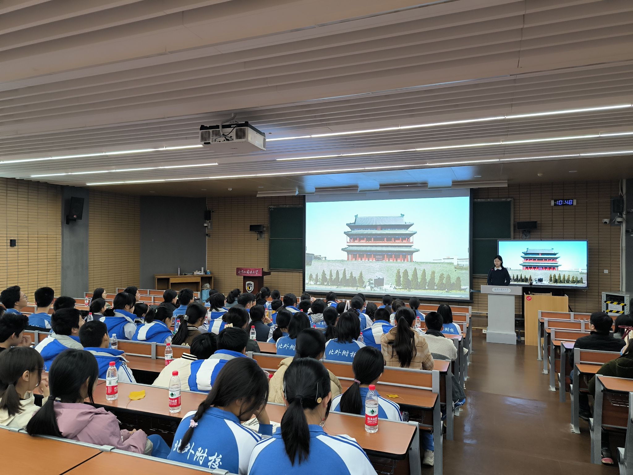 11月8日北外附校副校长、初中部党支部书记杨磊带队师生80人来访开云kaiyun体育,开云kaiyun体育党总支组织员张春霞,本科党支部罗惠心、熊菁华、田韵熙、郑瑞丹、张淡然,博士周濛濛、研究生张鸣天等人参与接待。先后陪同师生参观北外校史馆、语言博物馆、“拉贝与中国”主题展、北外人工智能实验室、图书馆等。在逸夫楼一阶罗惠心、熊菁华、田韵熙向来访师生介绍了大学生创新创业项目:北京中轴线研究、非遗皮影多语种传播、非遗苗喵秀多语种推广,向广大中学生介绍大学生如何开展科研创新研究,并运用语言来讲好中国故事,传播中国博大精深的传统文化。