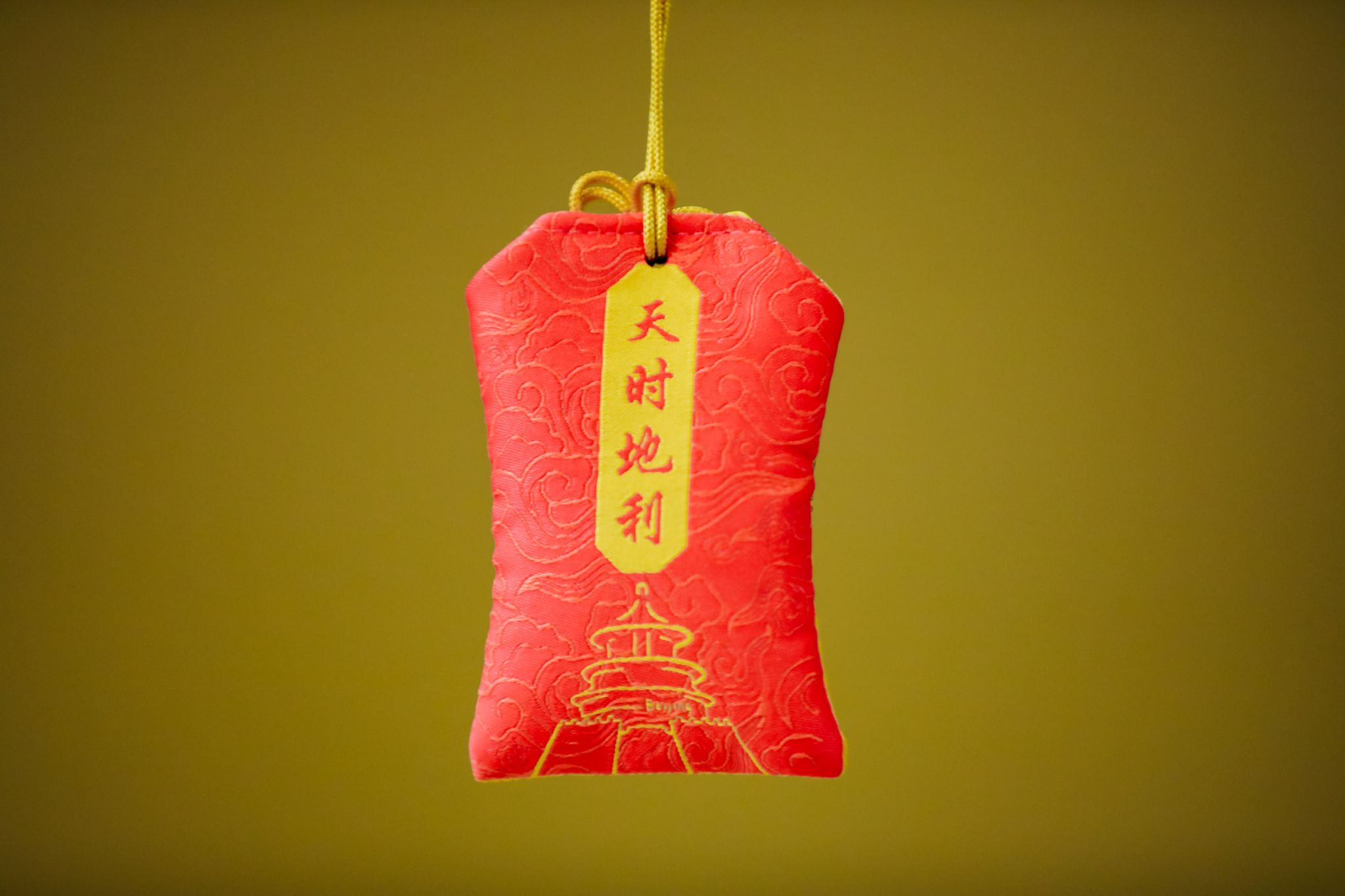 北外大学生创新创业项目非遗海外工作室苗喵绣设计并制作了开展仪式的伴手礼——“天时·地利·人和”御守香囊。香囊的设计理念体现了中国和奥地利文化之间的“和而不同”,一面绣以恢宏大气的金黄色北京天坛,另一面展现了奥地利美泉宫的典雅别致,以新颖的方式展现了文化交融之美,深受观展嘉宾的喜爱。
