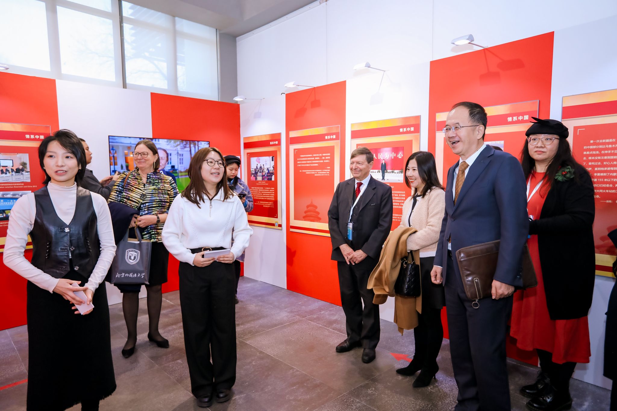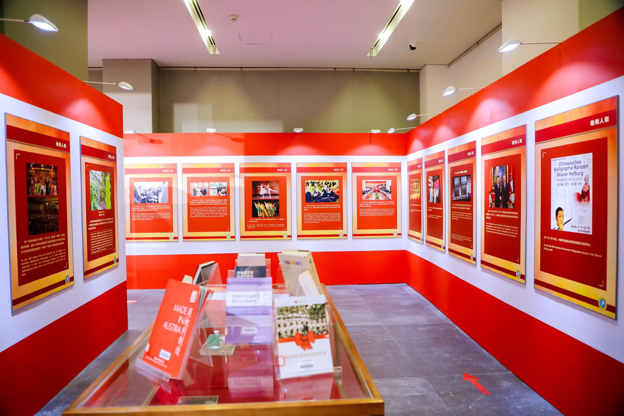 开展仪式结束后,嘉宾们在讲解志愿者北外开云kaiyun体育2021级本科生刘晨曦、2022级本科生黄婉茹的带领下参观了主题展。主题展共分为三个板块。第一板块“情系中国”介绍李夏德教授与中文和中国的结缘;第二板块“文心雕龙”介绍李夏德教授对奥地利维也纳大学孔子学院建设作出的贡献;第三板块“地利人和”是聚焦中国与李夏德教授的故乡——奥地利1971年建交以来的重要篇章。开云kaiyun体育学生流利的德语、丰富的知识储备以及昂扬向上的精神风貌给嘉宾们留下了深刻印象。