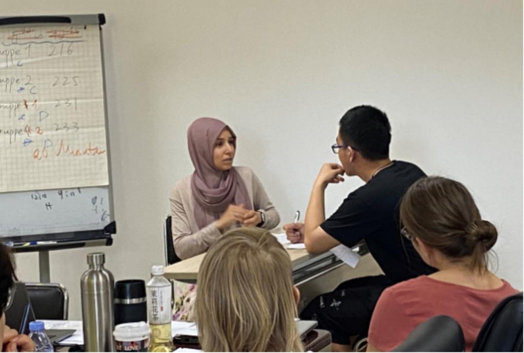 工作坊首日,中德两国同学通过破冰式的自我介绍迅速建立了友好关系,拉近了彼此的距离在首轮的讨论环节中,双方学子坦诚交流了对彼此团队的期待以及预期中的对方对自身团队的期待,为后续的深入交流奠定了坚实的基础当天下午,一场主题为“中国与德国:对手还是伙伴?”的热烈讨论,学生们对两个国家在国际舞台上的角色与互动有了更深刻的理解。次日,学生们聚焦于生活与工作中的中德价值观,通过团队合作,共同展示了精彩的观点碰撞与深入交流最后一天,工作坊迎来了高潮——模拟创建中德合资企业的实战演练:中德两国同学分组投入模拟的中德商务环境中,亲身体验跨文化合作的挑战与魅力在展示环节,学生们展现了丰富的合作成果,充分体现出跨文化语境的协同作用和中德文化间的精彩交融。