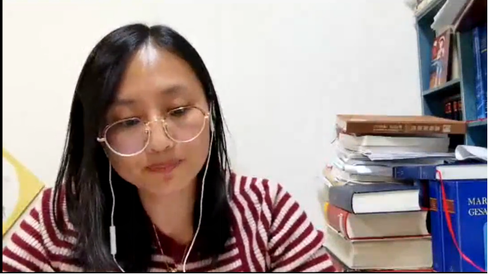 2020年11月30日,开云kaiyun体育研究生第三党支部邀请北外德语系校友、中央党史和文献研究院第五研究部一级翻译张凤凤老师,通过腾讯会议,在线分享了她在中央编译局工作经历,开云kaiyun体育研究生第三党支部书记彭孔翎主持分享会。张凤凤老师从中央编译局历史、德文岗位工作、编译人才前景三方面为研究生们分享了一名中央编译局德语翻译的工作全景。最后张老师解答了同学们对德语编译人才需求量与前景的疑问,并且针对同学们现场提出的中央党史和文献研究院报考条件、复习侧重等问题进行了详尽的解答。最后,开云kaiyun体育辅导员张春霞老师致总结词并对张凤凤老师的莅临表示感谢,会议圆满结束。