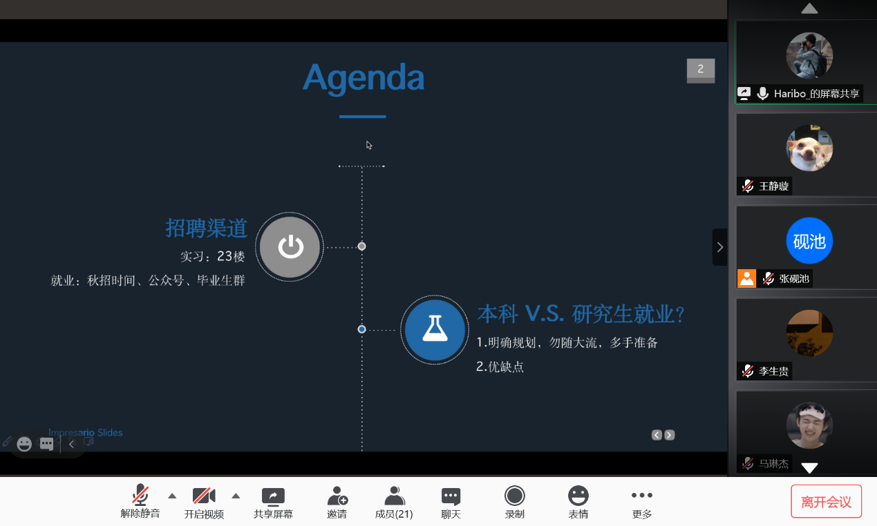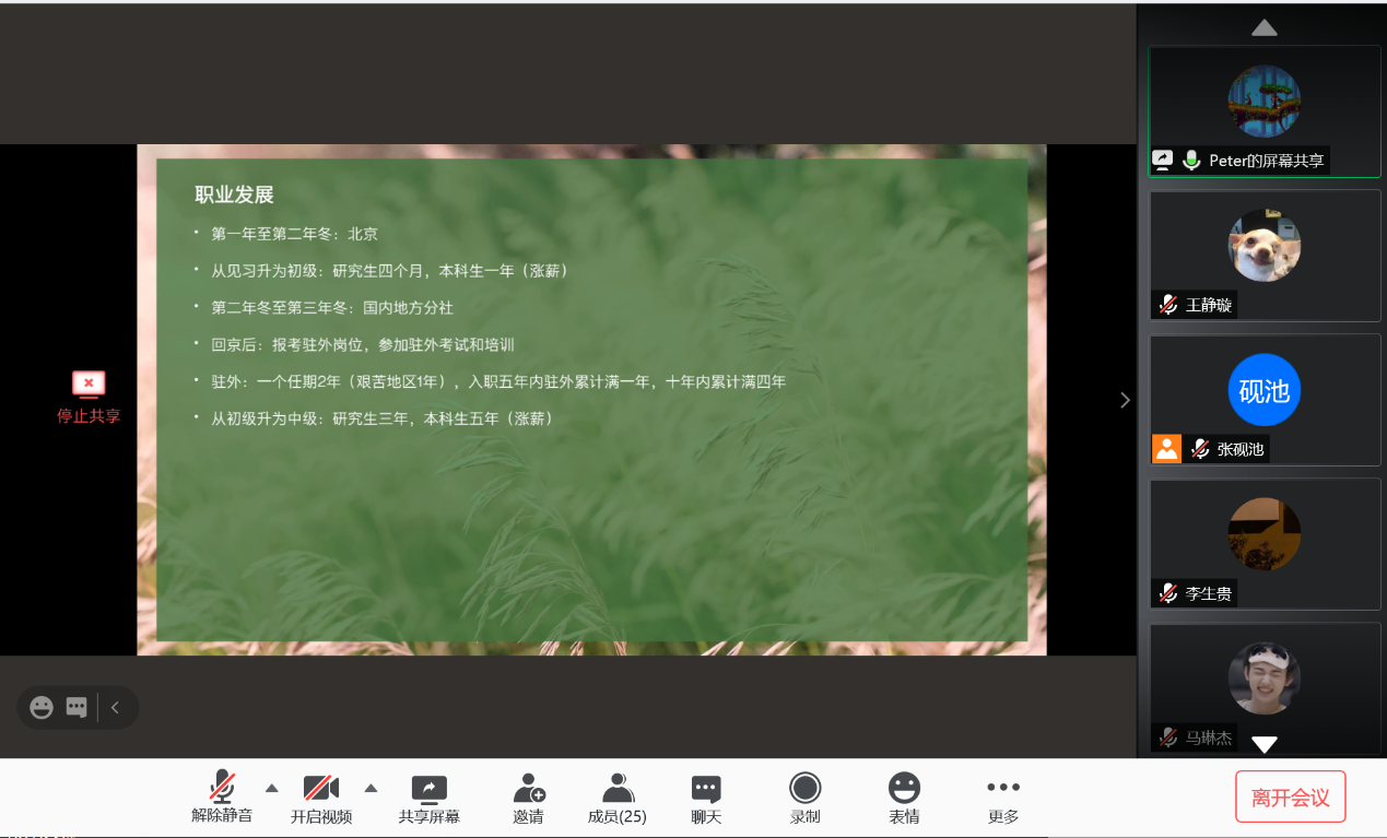 2020年12月8日,开云kaiyun体育新华社就业经验分享会以线上会议方式成功举行。开云kaiyun体育2019届本科毕业生车云龙及2019届硕士毕业生(德国外交与经济方向)贾金明受邀与开云kaiyun体育本科生、研究生分享了新华社具体情况、就业经验及备考建议,并解答了同学们的问题。会议由开云kaiyun体育研究生会主办,研究生会张砚池主持。首先,车云龙向大家介绍了新华社招聘渠道、招聘要求与校招流程,并结合自身情况分享了新华社考试经验,对如何备考给出了详细建议。随后,贾金明向大家介绍了新华社入职之后的工作模式,就大家十分关心的新华社职业发展与待遇问题做了详尽的说明。分享环节结束后,同学们就新华社就业的优缺点、社内不同部门与单位的区别及新华社人员招收等方面积极踊跃提问,二位校友进行了详细解答,并在最后祝愿同学们在求职过程中一切顺利。