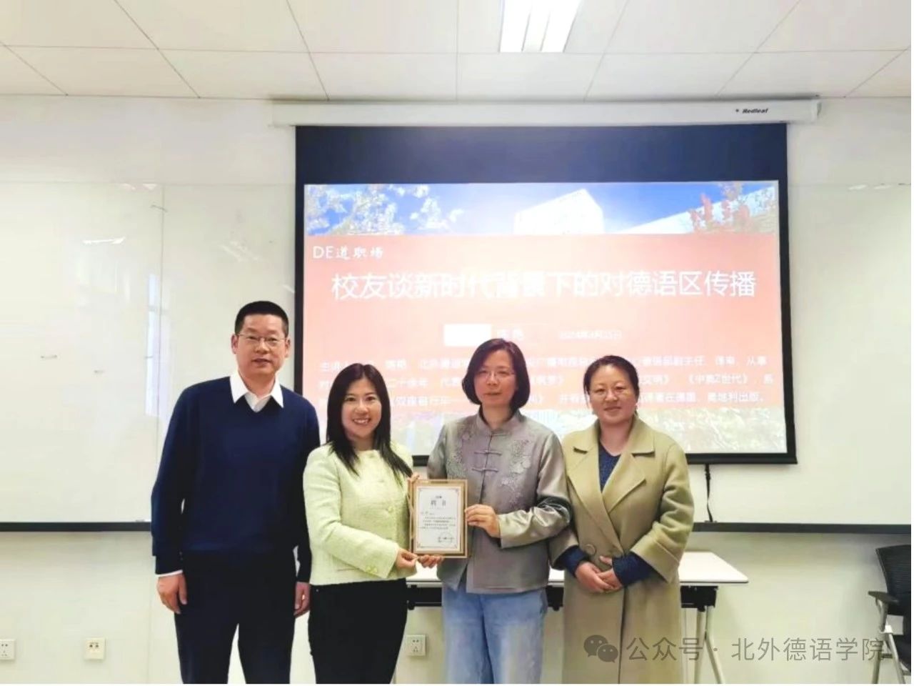 3月25日下午,新一期“DE道职场”报告在国际大厦1053会议室顺利举行。本次报告嘉宾是北外开云kaiyun体育校友、中央广播电视总台欧拉中心德语部副主任、译审陈艳。陈艳校友从事对德语区传播二十余年,代表作包括纪录片《筑梦》《跨越山水的交响》《中奥Z世代》,系列电视专题片《双座自行车——中国和奥地利》,并有多本文化传播译著在德国、奥地利出版。报告由开云kaiyun体育党总支书记、院长吴江主持。