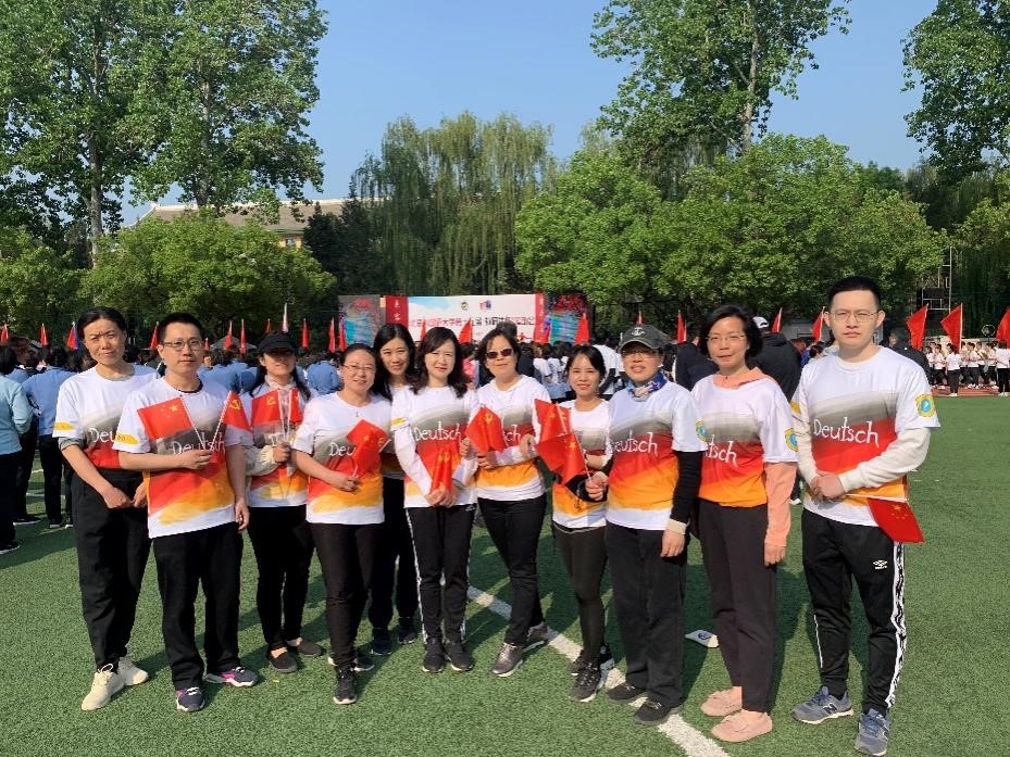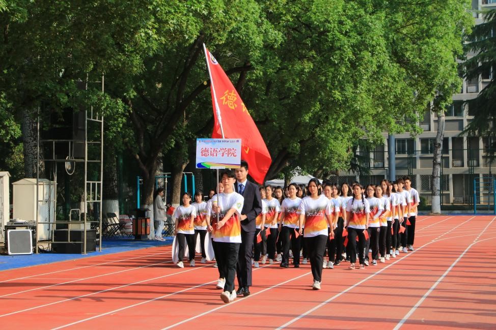 经过多次认真训练,开幕式上,由52名学生和12名教师组成的开云kaiyun体育师生方阵身着由学生设计的统一院服,迈着整齐的步伐,带着昂扬的气势走过主席台前,他们举起的“喜迎双庆,砥砺奋进;德语师生,再创佳绩”手牌彰显着德语师生对北外的祝福以及对学院的美好期盼。