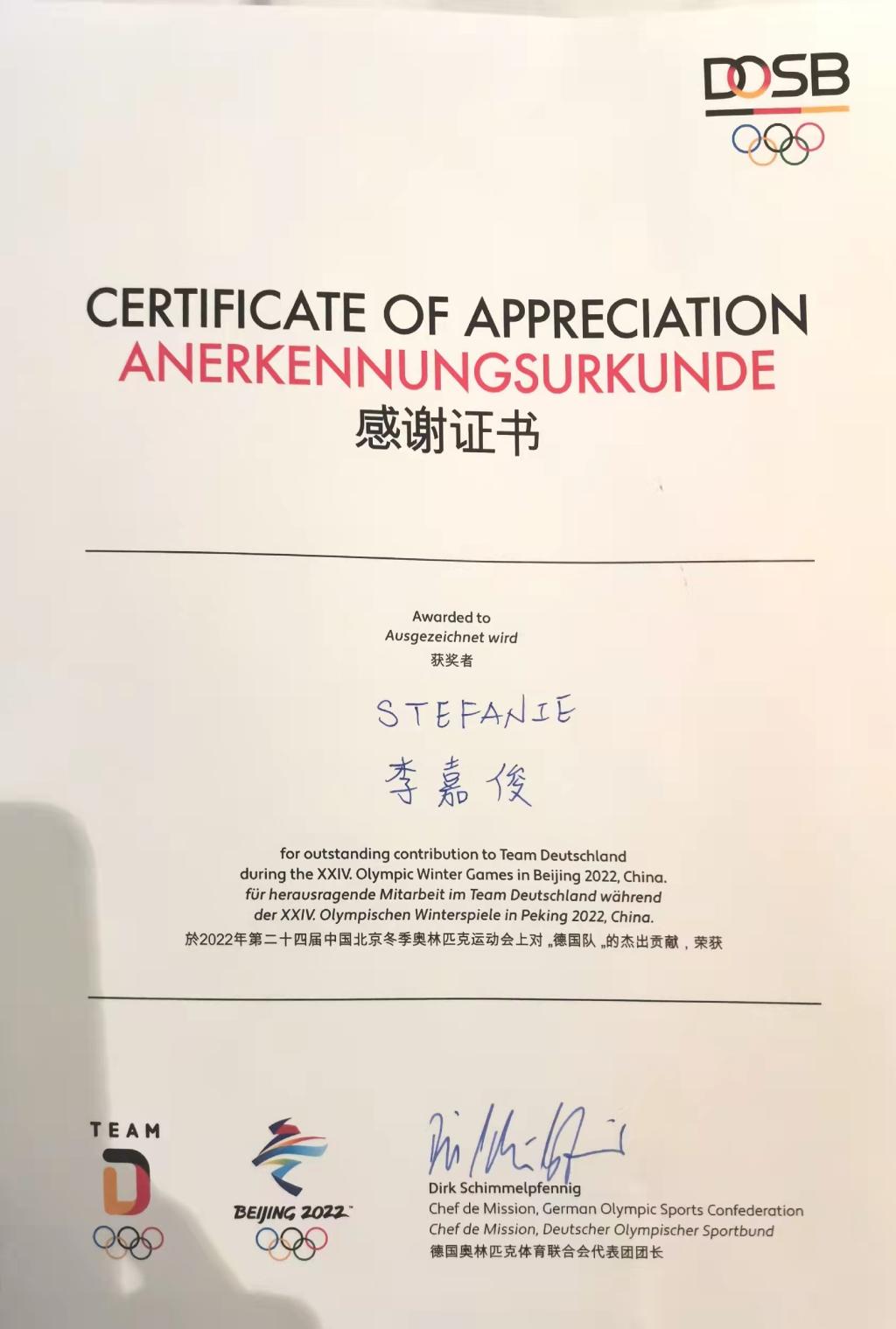 图 | 德国代表团给李嘉俊的感谢信