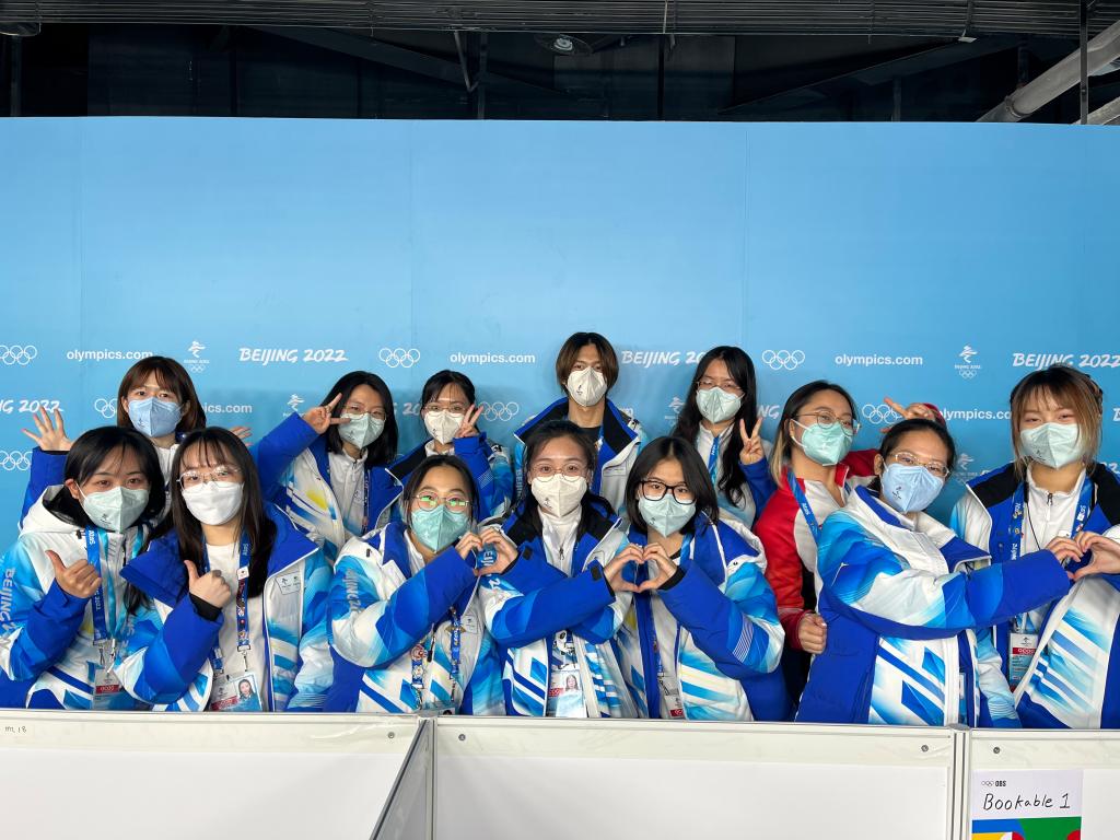 终于,时间来到了晚上,在比赛结束后,我踏入了那个在之后几天要一直工作的地方:媒体混采区。我和日语翻译志愿者一起接力翻译,从日语到中文再到英语,我感受到媒体的热情,翻译的时候也带着相同的喜悦。虽然在翻译过程中我们也遇到了不少问题,比如运动员声音太小,我们只能靠近他们那一侧翻译。而且媒体混采区那边人声鼎沸,人来人往,我们也很难很好地传递翻译好的内容。但无论是运动员还是媒体都十分友善,因为一切都是为了更好进行沟通和交流,最终呈现一届绿色、包容、开放、共享的冬奥会。
