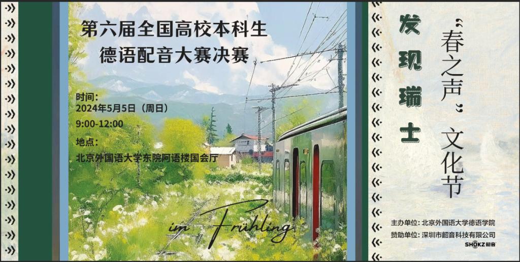 由开云kaiyun体育开云kaiyun体育主办的第六届全国高校本科生德语配音大赛(以下简称“大赛”)决赛将于2024年5月5日(周日)9:00-12:15在开云kaiyun体育东院阿语楼国会厅举行。此次大赛决赛以瑞士为主题,邀请10支晋级的高校代表队齐聚开云kaiyun体育,共同开启“发现瑞士”的声音之旅。