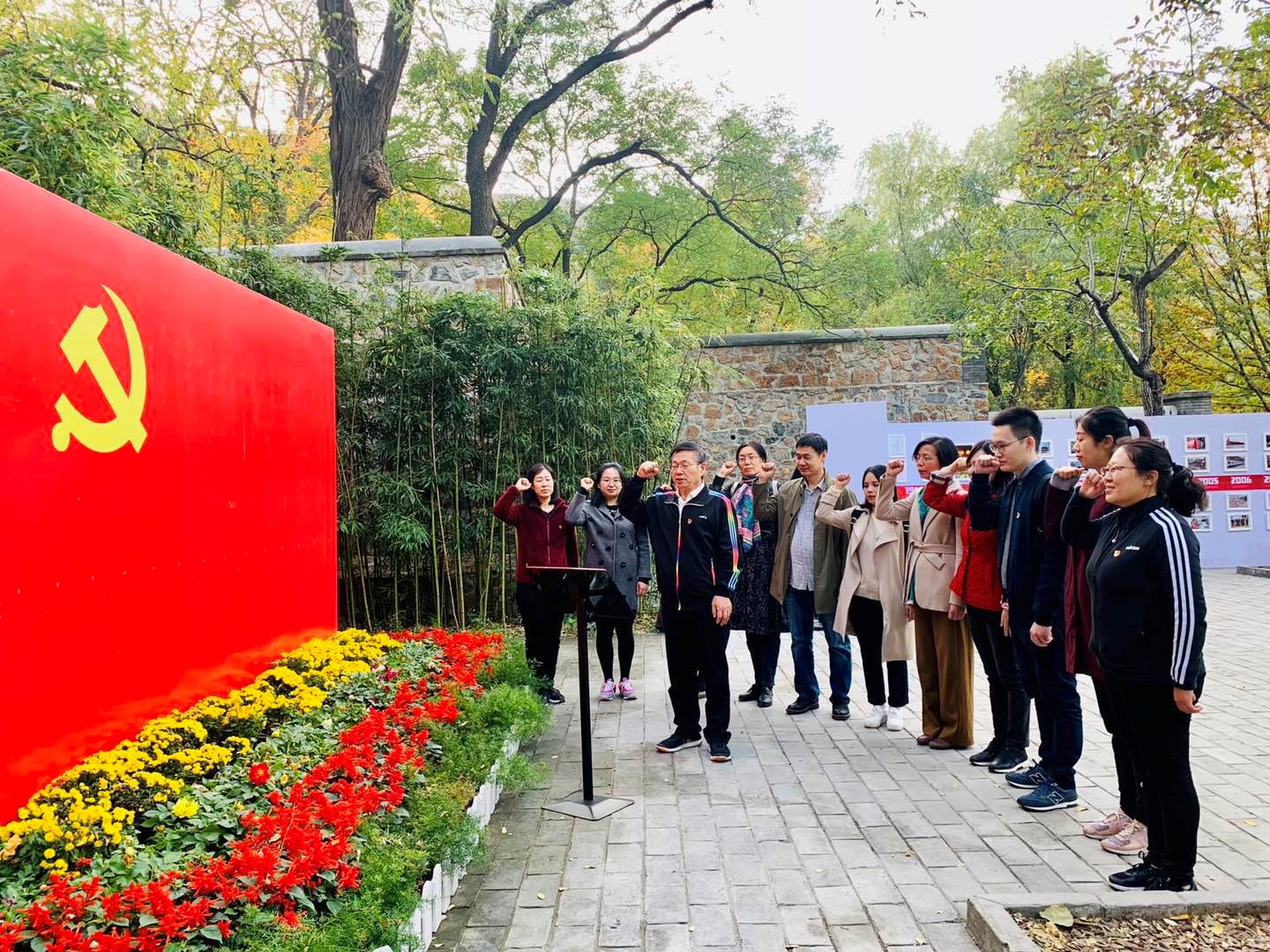 结束在香山革命纪念馆的参观之后,大家步行前往位于香山公园内的双清别墅和来青轩。这里曾是毛泽东、朱德、刘少奇、周恩来、任弼时等革命领导人的故居,是中国共产党领导下人民解放战争走向全国胜利的指挥部,是筹备召开新政协、建立新中国的历史见证地。在此,支部成员在开云kaiyun体育党总支书记常秀鹏的带领下重温入党誓言,相互勉励不忘初心、牢记使命。