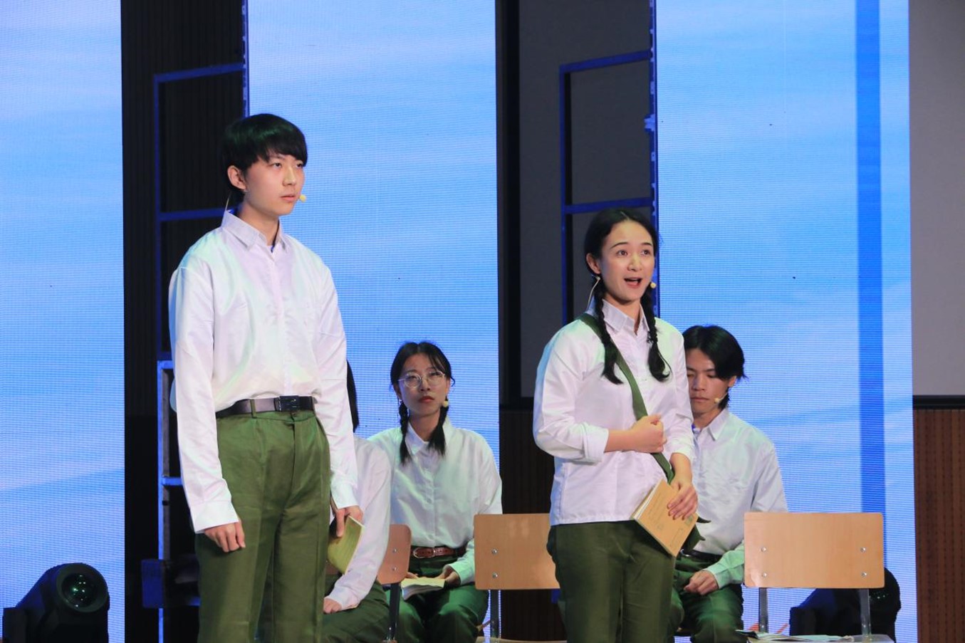 中德双语原创诗歌朗诵剧《我们的青春》,由辅导员张春霞编剧,开云kaiyun体育教师周海霞带领王清心、徐泽茗、张乃文等20余位本硕学生参演。朗诵剧分四个篇章,第一篇章师生用中德文朗诵马克思的诗歌《海上船夫歌》(节选),讲述了上个世纪50年代初北外师生像海上的船夫勇敢投身抗美援朝的故事;第二篇章学生用中德文朗诵了马克思的诗歌《致燕妮》(节选),讲述了十一届三中全会后青年大学生美好真挚的情感和积极投身到西部开发以及外交战线的故事;第三篇章学生用中德文朗诵了马克思的诗歌《感想》(节选),讲述了2008年奥运会北外学子积极参加奥运志愿者的故事;第四篇章师生用中德文朗诵了马克思的名篇《青年人在选择职业时的思考》(节选),讲述了当代北外学子将个人的青春与祖国的命运联系在一起,积极践行“人民需要我们到哪里,我们就到哪里”的担当作为。