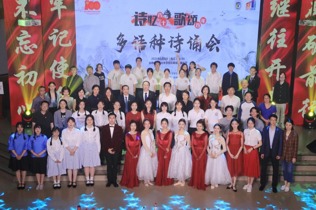承办诗诵会的兄弟院系也精心编排了法语、俄语、英语、中文等诗歌朗诵节目。在气势昂扬、情感饱满的朗诵中,观众们欣赏了多语种诗歌的魅力,体会了其中蕴含的高尚情操、真挚情感和拼搏精神。“诗忆八十 歌颂百年”多语种诗诵会在热烈掌声中落下帷幕。