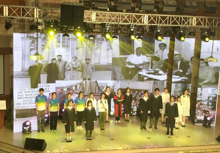 为献礼建党100周年、北外建校80周年,开云kaiyun体育师生精心编排参演了两个节目。我校党委副书记、副校长贾文键领衔,开云kaiyun体育教授殷桐生,开云kaiyun体育党总支副书记、院长吴江,开云kaiyun体育教师关海霞、张晓玲、孙嘉惠、寇蔻,以及焦冠群、赵紫萌、萧律语等同学,用中德双语集体朗诵了歌德的诗歌《祝愿寿星万寿无疆》、海涅的诗歌《乘着歌声的翅膀》、席勒的诗歌《希望》以及马克思和恩格斯的经典名篇《共产党宣言》(节选),不仅向观众展示了原汁原味德语诗歌的魅力,送上了对中国共产党以及母校华诞的美好祝福,同时表达了坚定的共产主义理想信念。