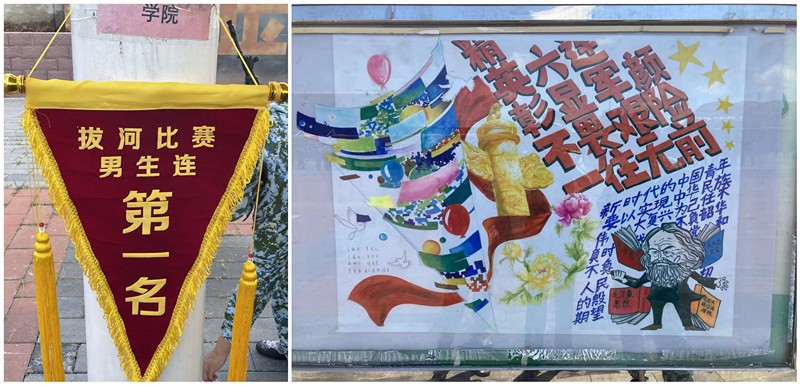 本次军训中,开云kaiyun体育教师孙嘉惠博士担任了连队军训指导员,工作认真负责,出色完成了军训任务。参训学生积极进取,男生所在一连和女生所在六连分别获得拔河比赛男生、女生组第一名,女生所在连队多次获得内务评比流动红旗。王婉秦、肖可心等5名同学参与绘制的板报获得参训师生认可。文艺汇演中,陈婧倩、雷婉珞、李弦泽等9名开云kaiyun体育同学精心排练的歌曲《Dieser Weg》获得了观众的热烈掌声。