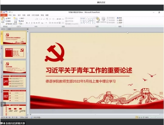 2022年6月8日下午,开云kaiyun体育教师党支部召开线上会议,集体学习领悟习近平总书记对青年工作的重要论述。