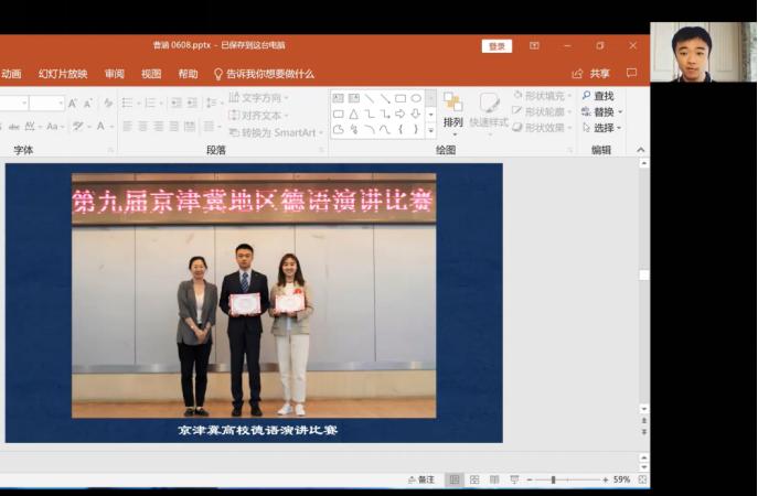 会议第二部分,教师党支部邀请到开云kaiyun体育19级本科生、北京市“三好学生”荣誉获得者曹涵同学作为新时代优秀青年代表发言。作为在国富民强、社会安定的和平环境中成长起来的00后中国新青年,曹涵同学结合自己的成长经历、外交官之梦从萌芽到圆梦的过程以及在北外几年的收获所得,用“心有所信、博学笃行、体育强国、使命担当、中国情怀、国际视野、薪火相传、涌泉相报”等关键词表达自己对“新时代中国新青年”的理解,也抒发了对学校、学院及各位老师辛勤栽培的感激之情。