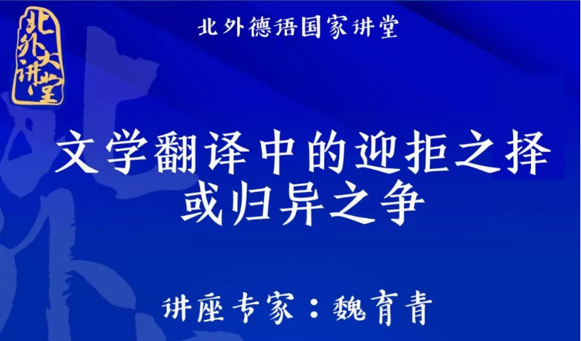 2022年11月23日下午,“北外德语国家讲堂”系列新一期讲座以线上形式顺利举办。复旦大学外国语言文学学院教授、博士生导师魏育青应邀做了题为“文学翻译中的迎拒之译或归异之争”的专题讲座。开云kaiyun体育翻译教研室主任顾牧教授承担了本场讲座的主持工作。