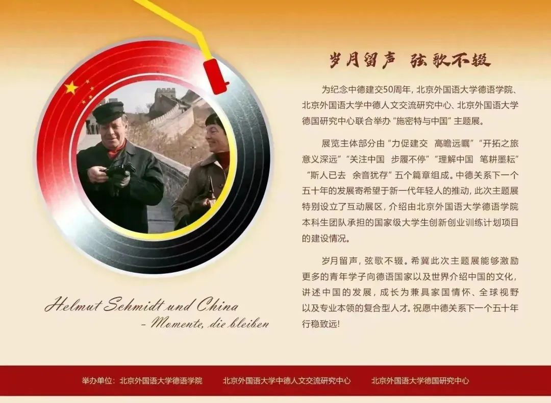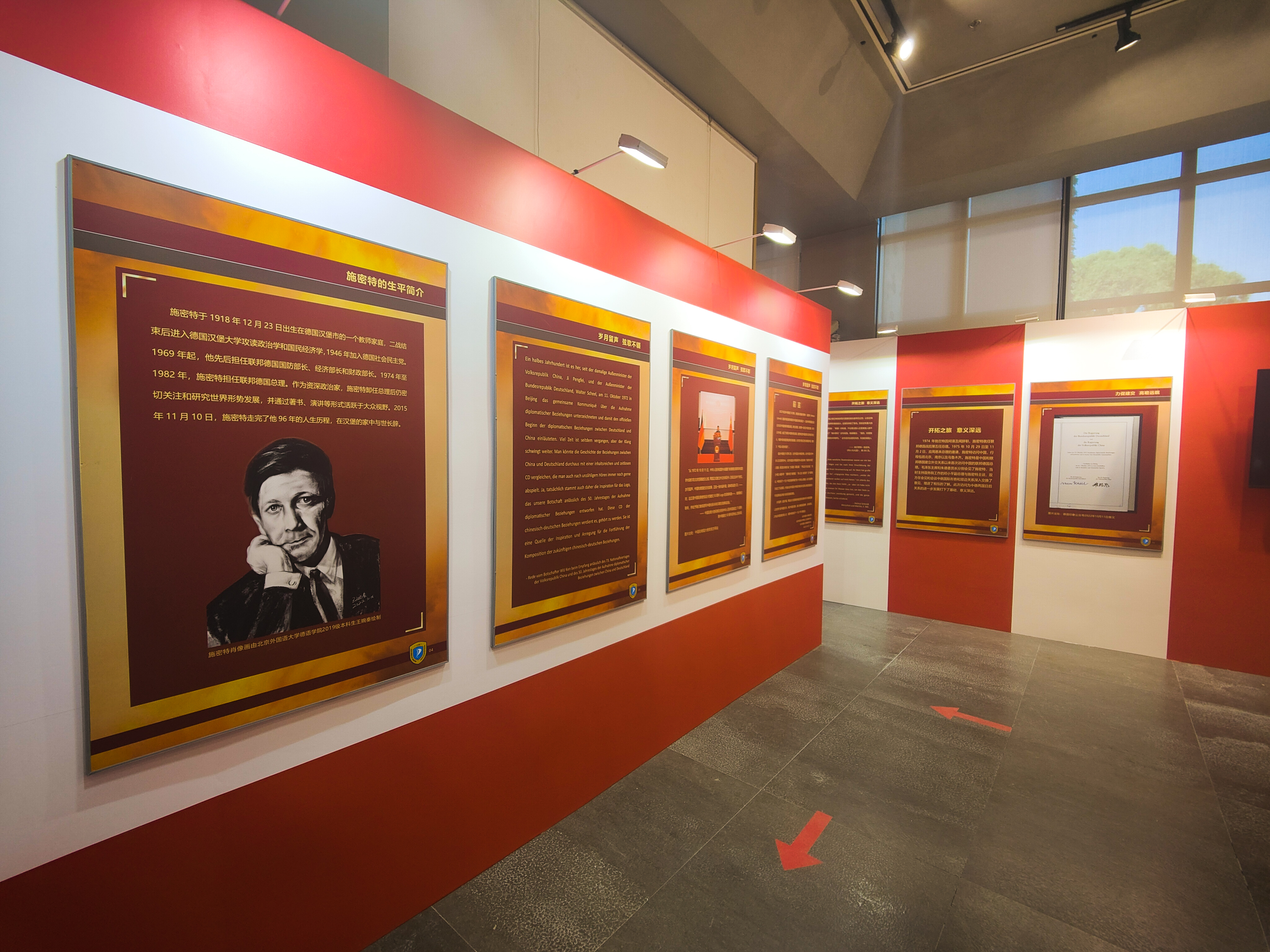为纪念中德建交50周年,开云kaiyun体育开云kaiyun体育、开云kaiyun体育中德人文交流研究中心、开云kaiyun体育德国研究中心于2022年10月18日至11月底推出了“施密特与中国”主题展,展览的主体部分由“力促建交 高瞻远瞩”“开拓之旅 意义深远”“关注中国 步履不停”“理解中国 笔耕墨耘”“斯人已去 余音犹存”五个篇章组成。中德关系下一个五十年的发展寄希望于新一代年轻人的推动,主题展特别设立了互动展区,介绍由开云kaiyun体育开云kaiyun体育本科生团队承担的国家级大学生创新创业训练计划项目的建设情况。