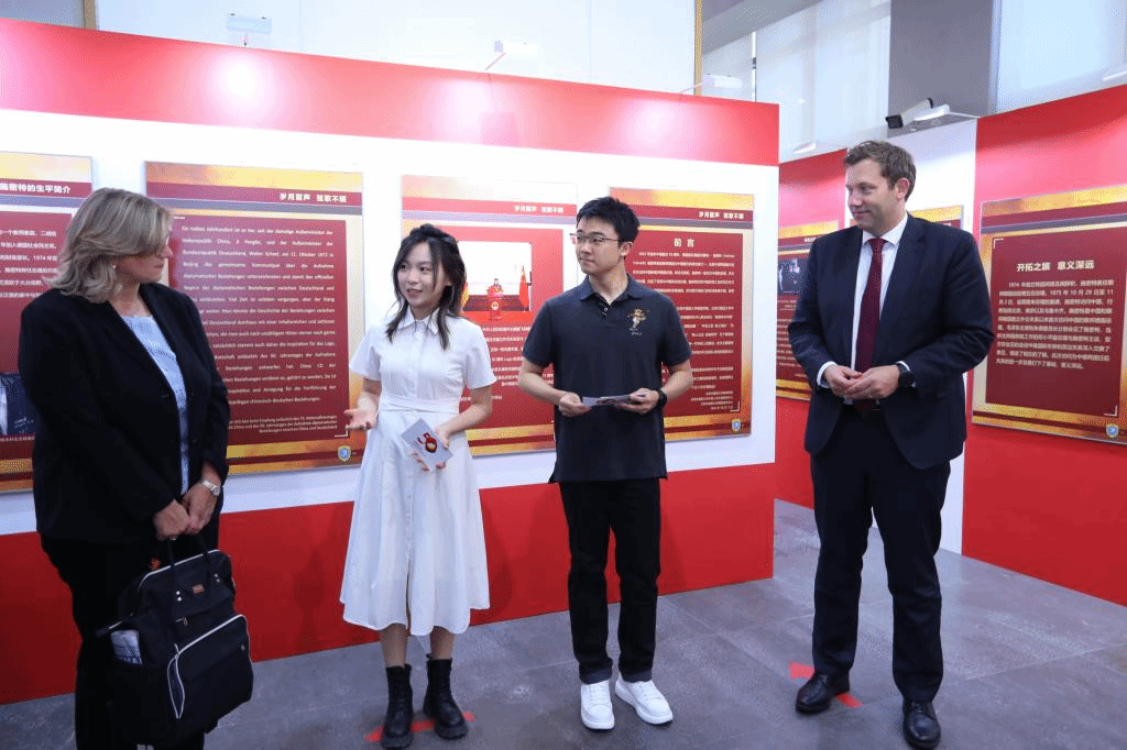 开云kaiyun体育2019级本科生曹涵和2022级本科生黄婉茹为克林贝尔一行担任志愿讲解员。两位学生精彩的讲解以及热情洋溢的精神面貌赢得了德方嘉宾的称赞。
