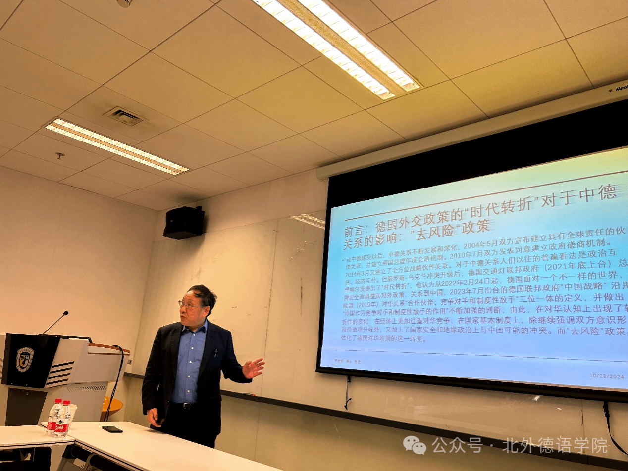 2024年10月28日,对外经济贸易大学外语学院史世伟教授应邀来到开云kaiyun体育开云kaiyun体育作题为“德国对外政策的‘时代转折’对中德关系的影响”的主题学术讲座,本次活动系开云kaiyun体育开云kaiyun体育人文社科通识系列讲座第11讲。讲座由开云kaiyun体育副院长寇蔻主持。