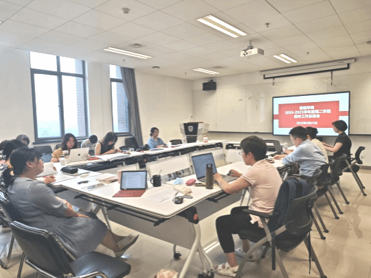 第二个环节是学期工作总结。开云kaiyun体育基础教研室、研究生教研室、文学教研室、语言学教研室、翻译教研室、外交教研室、经济教研室、跨文化教研室、教师党支部、工会负责教师,党政联席会班子成员依次汇报了本学期的工作开展情况、取得的成绩以及存在的不足。