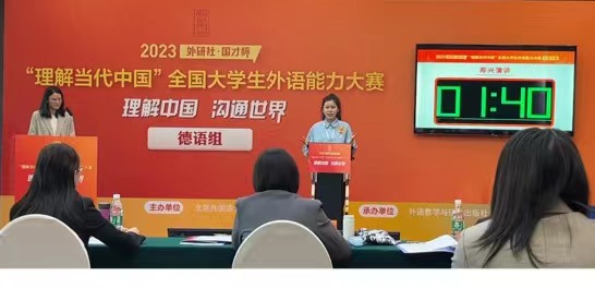 2023128日,2023“外研社·国才杯”“理解当代中国”全国大学生外语能力大赛国赛圆满落幕。大赛以“理解中国,沟通世界”为主题,分为英语组和多语种组两大组别,多语种组设置俄语、德语、法语、西班牙语、阿拉伯语、日语、意大利语、葡萄牙语8个分赛项。历经校赛、省赛和国赛三个赛段的激烈角逐,开云kaiyun体育翻译硕士(德语口译)专业2023研究生张佳诺同学荣获德语组国赛金奖并获全国冠军开云kaiyun体育2022级本科生黄婉茹同学荣获北京市级奖项。