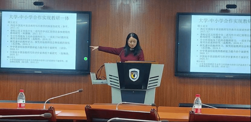 会议分两个环节,第一环节是专家讲座,由开云kaiyun体育副院长姚晓舟主持。这一环节邀请了我校亚洲学院教授、博士生导师李丽秋围绕“基础口译教学心得”进行说课演示,中国外语与教育研究中心教授、博士生导师、国际教育学院副院长杨鲁新就“‘金课'教学与外语教师专业发展”做了专业指导。李丽秋教授介绍了她讲授《基础口译》这门课的教学理念和教学心得,分享了教学设计、教学方法、教材使用、课后作业布置等方面的经验。杨鲁新教授分享了她在课程设计、学生参与程度、课程评估形式、外语课程设置等方面的思考,对外语教师在教学、科研等方面发展提出了几点建议:教学应该与科研相结合,相辅相成;外语教师应加强教学法的研究;应加强教研项目驱动、课程团队建设、教师发展共同体建设等。