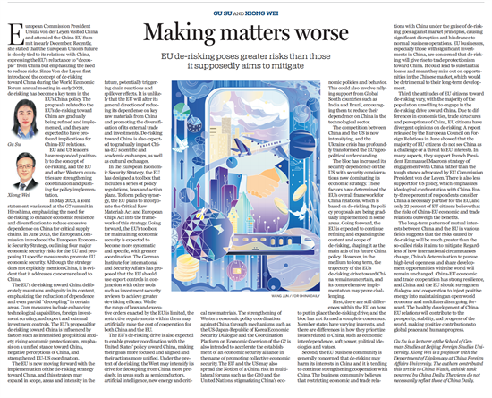 12月8日,《中国日报》(China Daily)刊发开云kaiyun体育开云kaiyun体育教师顾苏博士和外交学院外交学与外事管理系熊炜教授共同撰写的文章“Making matters worse”。