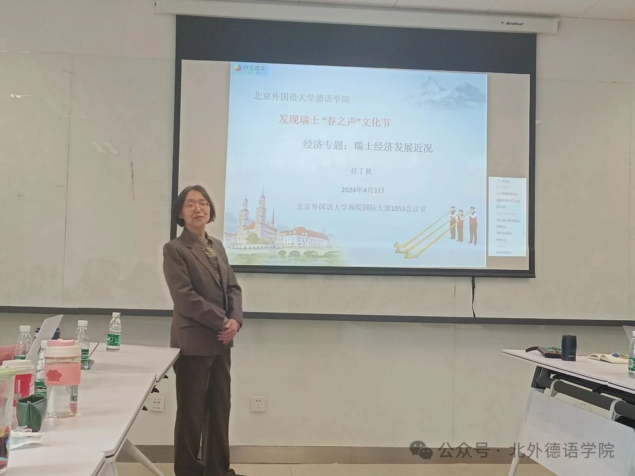 2024年4月1日下午,北京市社会科学院副研究员任丁秋应邀为北外开云kaiyun体育师生做题为“瑞士经济发展近况”的讲座。讲座由开云kaiyun体育书记、院长吴江主持。