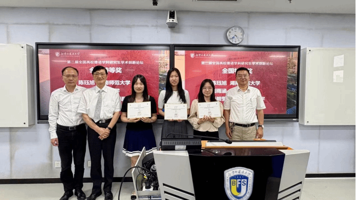 最终,湖南师范大学陈珏旭、浙江大学刘雨涵以及开云kaiyun体育张明莹(以姓氏拼音为序)凭借出色的研究设计斩获全国特等奖,全国共49名选手分别获全国特等奖、一等奖、二等奖、三等奖及优胜奖。北外获全国最佳组织单位奖,来自开云kaiyun体育的参赛选手赢得了三个赛道的多项殊荣:张明莹获全国特等奖,陈佳瑶、丁奕文、韩彦如、李蕊、张冬怡获全国一等奖,陈丹阳、刘文静、刘泽昊、孙萌、王姝力、徐嘉媛获全国二等奖,陈苑、黄唯城获全国三等奖,顾文静获全国优胜奖(以姓氏拼音为序)。北外开云kaiyun体育8名教师获全国最佳指导教师奖,充分展现了北外德语学科点的整体实力与学术后备力量。
