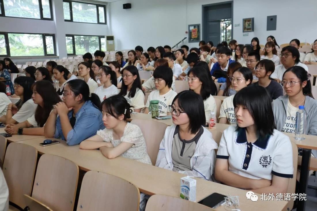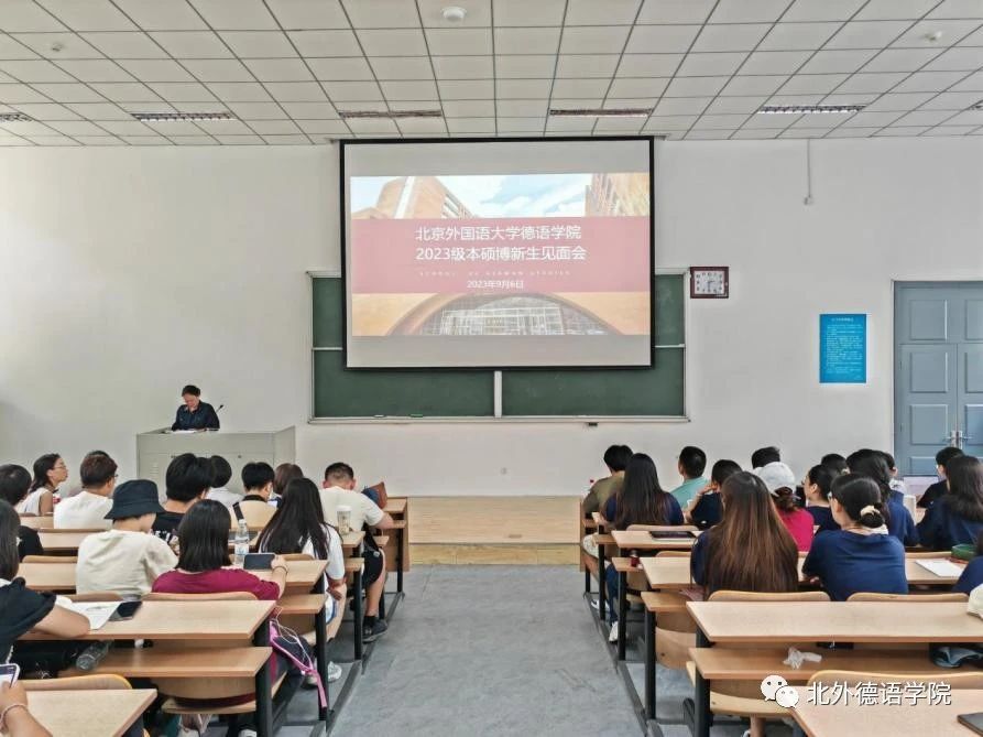 之后,学院党总支以及党政联席会成员先后发言。党总支成员、教学秘书于芳鼓励新生树立新的目标,努力实现梦想;党总支委员、副院长张晓玲、寇蔻勉励新生积极参与学院丰富多彩的各项活动,通过学习德语遇到更好的自己,认识更大的世界,用德语成就梦想,用梦想创造未来!党总支常务副书记李勇引用抗大校训“团结、紧张、严肃、活泼”,希望新生在大学宿舍生活中养成包容差异的生活习惯,搞好团结;在学院和学校的各种集体活动中,在各项校内外竞赛中,团结一致,共创佳绩。保持德语人严谨、认真和细致的好传统作风,勇创新、善突破。保持持之以恒、坚持阅读等良好的微习惯,遇见最好的自己。党总支书记、院长吴江借用汉字“熵”的由来以及管理学提出的实现熵减的三个路径,结合北外开云kaiyun体育的发展史,勉励2023级本硕博新生保持开放的心态,学会与不同的学科和方向实现“能量交换”,敢于尝试创新远离稳态,秉持“兼容并蓄 博学笃行”的北外校训,开启在北外的晨读和暮思!