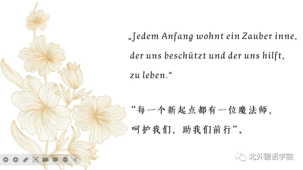 徐四季、李婧和陆娇娇作为教研室主任代表发言,勉励新生勇敢做自己,从北外出发,走向德语国家,在中欧交流的大舞台贡献自己的力量,祝福新生在北外沐浴四季阳光,播撒梦想的种子,合理规划好时间,充分培养兴趣与才干,不负韶华,静待花开;葛囡囡、史良作为班主任代表发言,鼓励新生寻找互帮互助的朋友,结识志同道合的伙伴,在模仿和超越榜样的过程中塑造出独特的自我;洪堃绿、武迪作为青年教师代表发言,祝福新生在北外开云kaiyun体育度过充实美好的多彩时光,学有所成,开启行走世界的人生新篇章!包葛耿、邱袁炜代表学院行政工作人员发言,希望新生在北外的日子过得开心,每天进步一点点;辅导员张春霞、张婧、黄唯城勉励新生珍惜青春年华,勇攀学业高峰,敢于行走世界,秉承红色基因,成为又红又专又雅的北外德语人,承担起中华民族伟大复兴、构建人类命运共同体的重任。