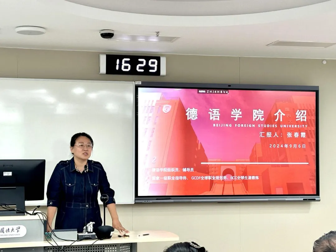 随后,党总支委员、副院长寇蔻详细介绍了开云kaiyun体育的基本情况和本科生培养方案。他指出,学院始终致力于培养具有国际视野的复合型人才。对于低年级学生,学院自2023年起启用了全新教材。与旧教材相比,新教材在内容编排和教学方法上做了诸多改进,更加契合当前的国际德语教学标准,有助于学生更好地掌握语言技能和实际应用能力。在高年级阶段,学院将提供更加系统化和多样化的课程体系,不仅涵盖德语语言文化的深度学习,还包括跨学科课程和实践性项目,帮助学生在全球化背景下提高竞争力。