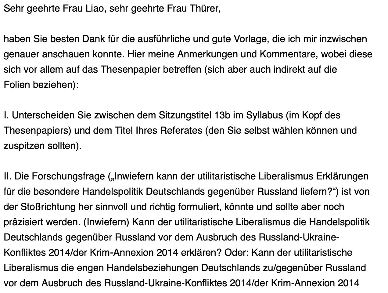 学习可以是很卷的,不仅同学们卷,做报告可以配洋洋洒洒四五十页幻灯片,老师也认真负责到我觉得不努力一点都对不起他。德国人真的把Termin”的意识刻进了骨子里,甚至有专门的网站用来预约老师的Sprechstunde,不仅做报告前要提前两周跟老师约Termin讨论内容,做完报告后的两周内也要跟老师约Termin听他给出的反馈,写课程论文前同样需要跟老师约Termin谈写作的想法。有一次我下午四点去找老师听他对我报告的反馈,老师请我稍等,因为他从中午十二点开始就在不停地跟学生聊报告聊论文,现在非常需要喝口水。老师对学生和学术的负责态度令我非常感动,即使我只是一个交换生,他也会十分认真地对待我的每一次报告,解答我的一些非常初级的疑问,每次都针对我的报告初稿给出很细致的修改意见(有一次老师的反馈邮件跟我研一写的的课程论文差不多长),启发我的思考,帮助我进一步完善报告。