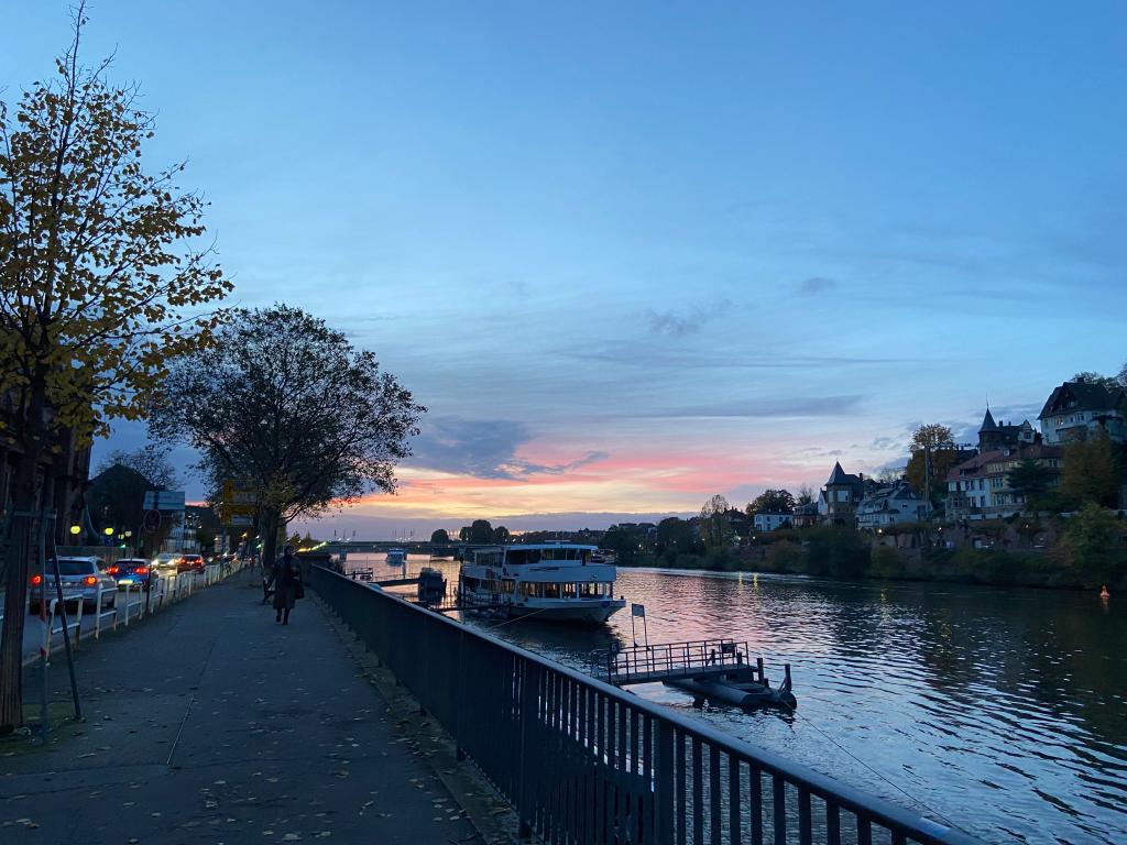 生活是很松弛的,毕竟在这边所有东西都是慢慢的。从高铁时速350km(告诉德国同学从我家到北京坐飞机两个半小时,坐高铁只要七个小时,他们都震惊了)、信息化飞速发展的中国来到这个办银行卡都要等一周信件的德国,我也开始学着放慢自己的脚步,告别以往宿舍-食堂-图书馆三点一线的生活,忘记出行的“目的性”,花更多时间去偶遇和享受生活中的小美好:在RBRegionalbahn,城际慢车)上久违地读纸质书,在万圣节的晚上跟语言班的同学们一起烤饼干、看哈利波特再吵吵闹闹地回宿舍,下雪天丢下正在复习的功课去城堡上看雪景,夏天躺在内卡河畔晒太阳,傍晚站在老桥上边看晚霞边发呆,半夜十二点跟刚认识五分钟的同学冲到操场上边散步边等极光,在结束两天的早八之后对着体育馆落地窗外的绿色大草地练习瑜伽……